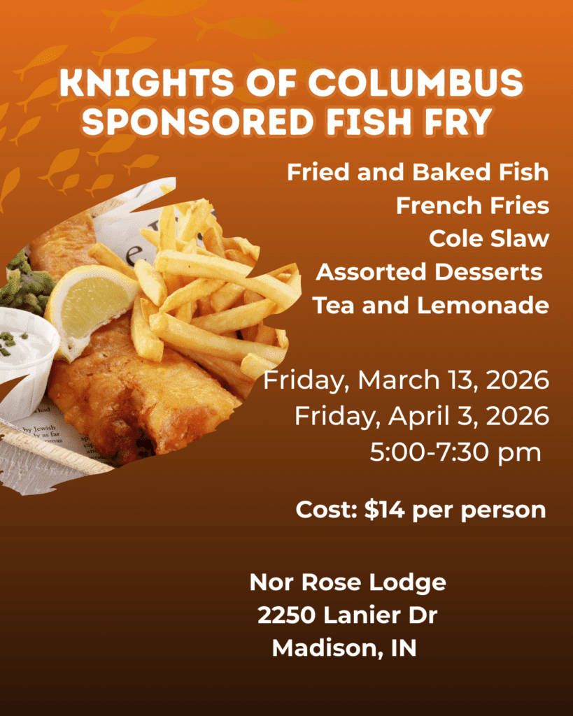 March 13 K of C sponsored Fish Fry, Nor Rose Lodge 5:00-7:30 pm